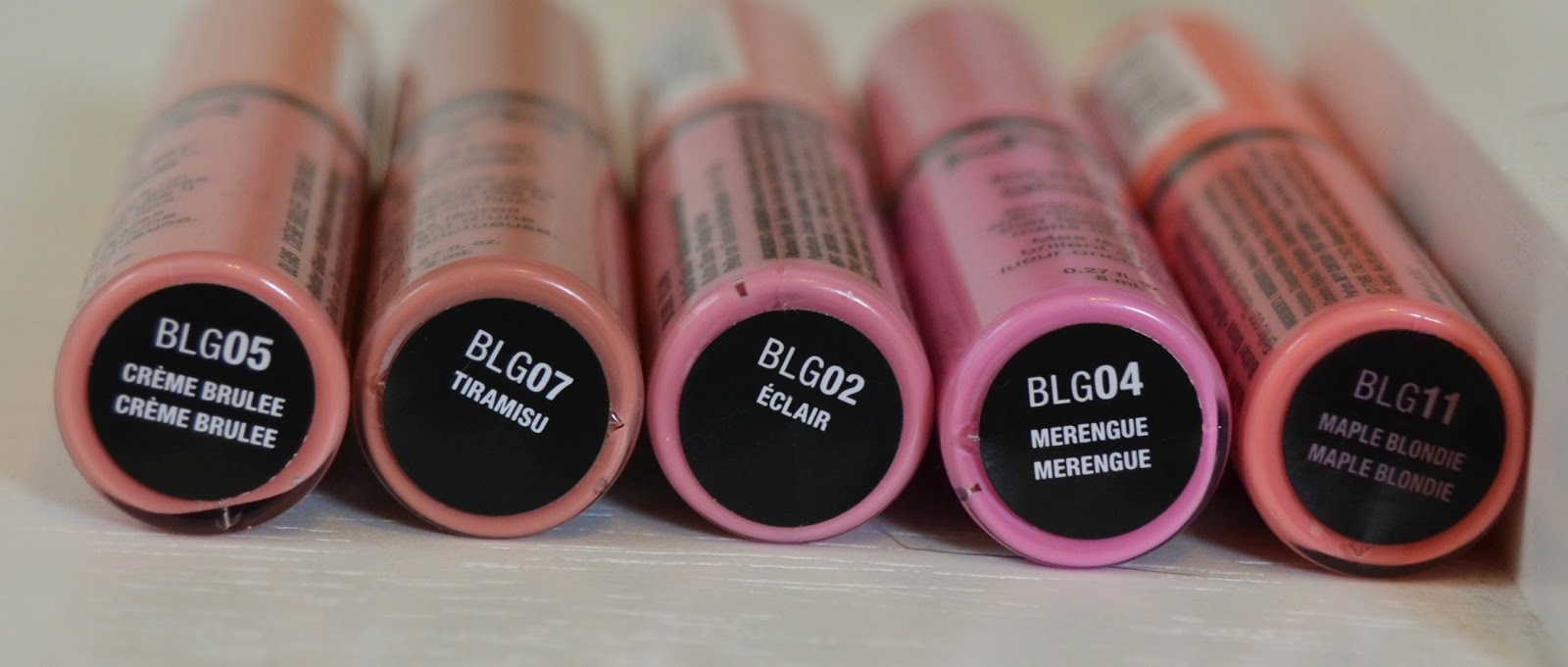 (L-R) Oh! Orange!, Strike a Rose, Pink Shock, Berry Bomb, Pink Wink, Cherry Me, Grape Vine, Quenched