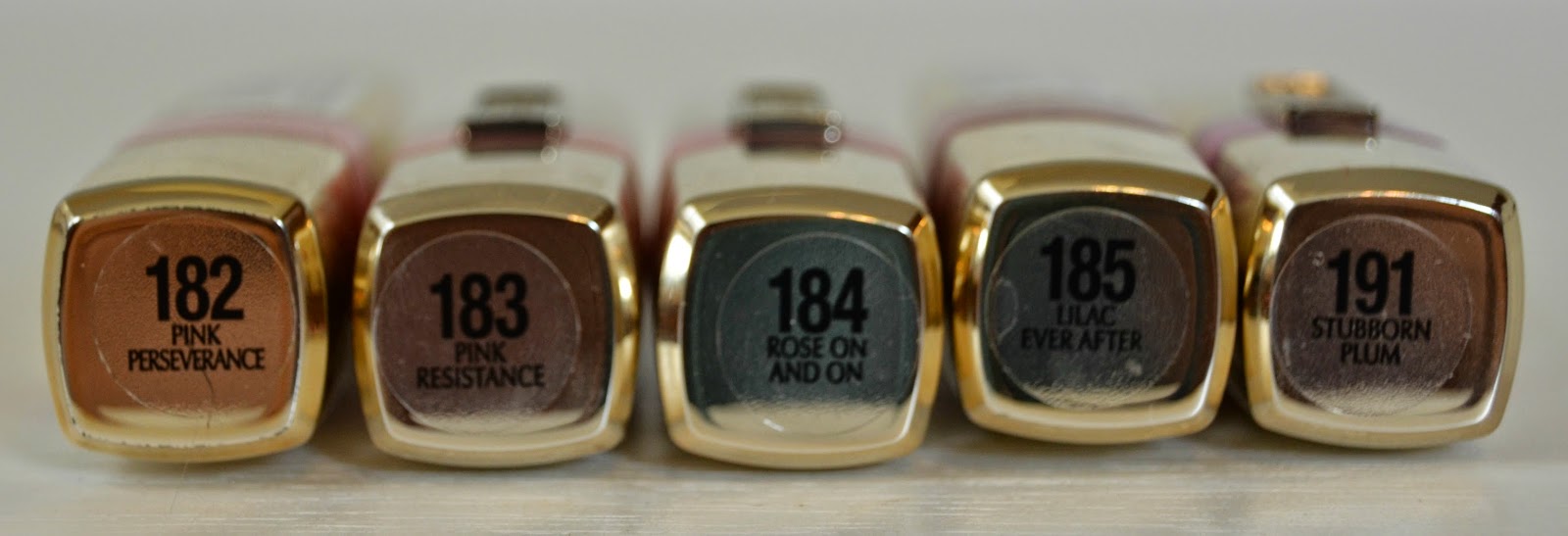 (Clockwise) Pink Plum, Peach Satin, Pink Frosting, Plum Wine, Orchid Hush