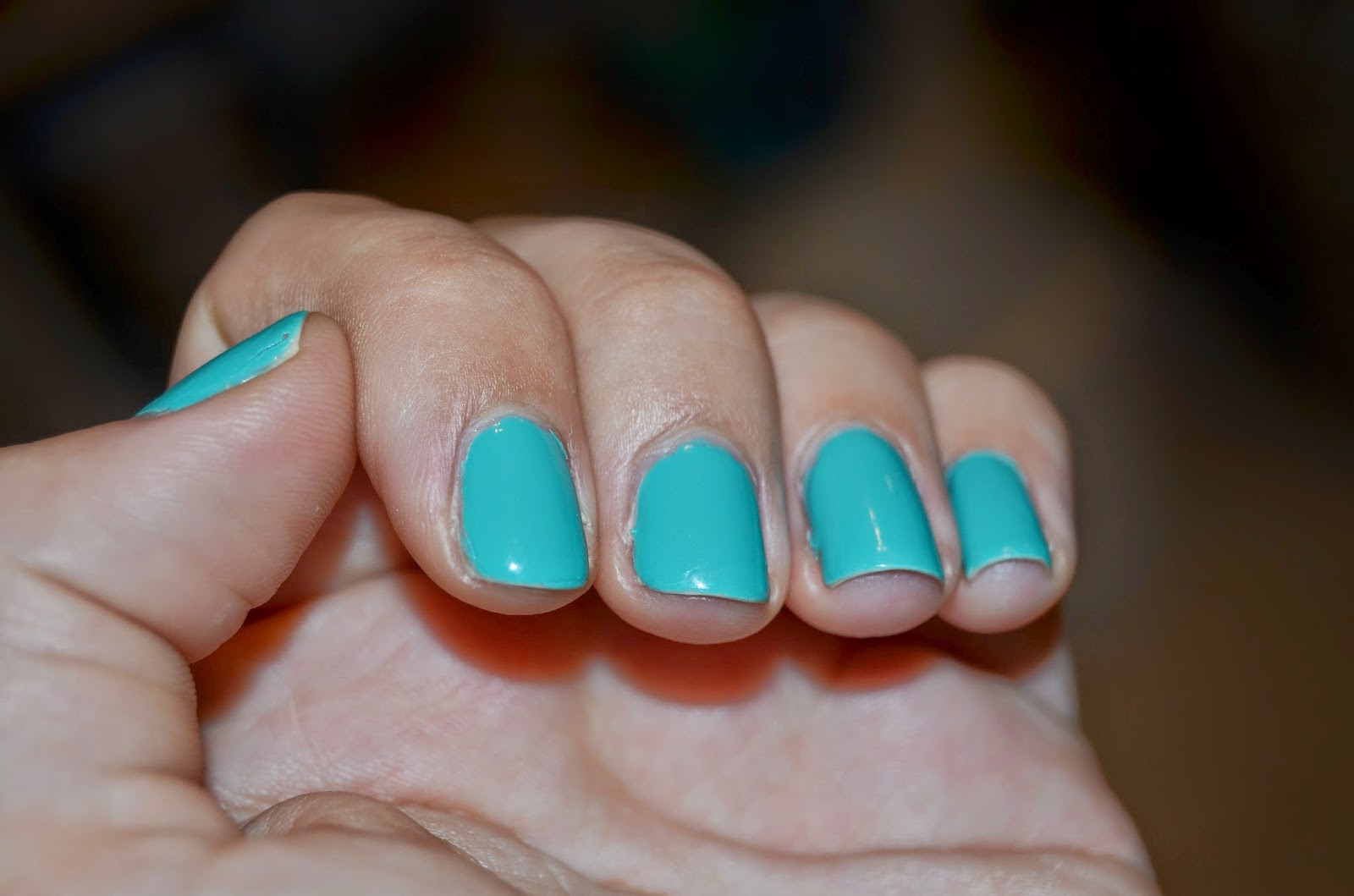 My color of choice as I'm sure you can tell from the title of this post was "Dive In". It's a beautiful cream finish sea foam/turquoise/teal shade!